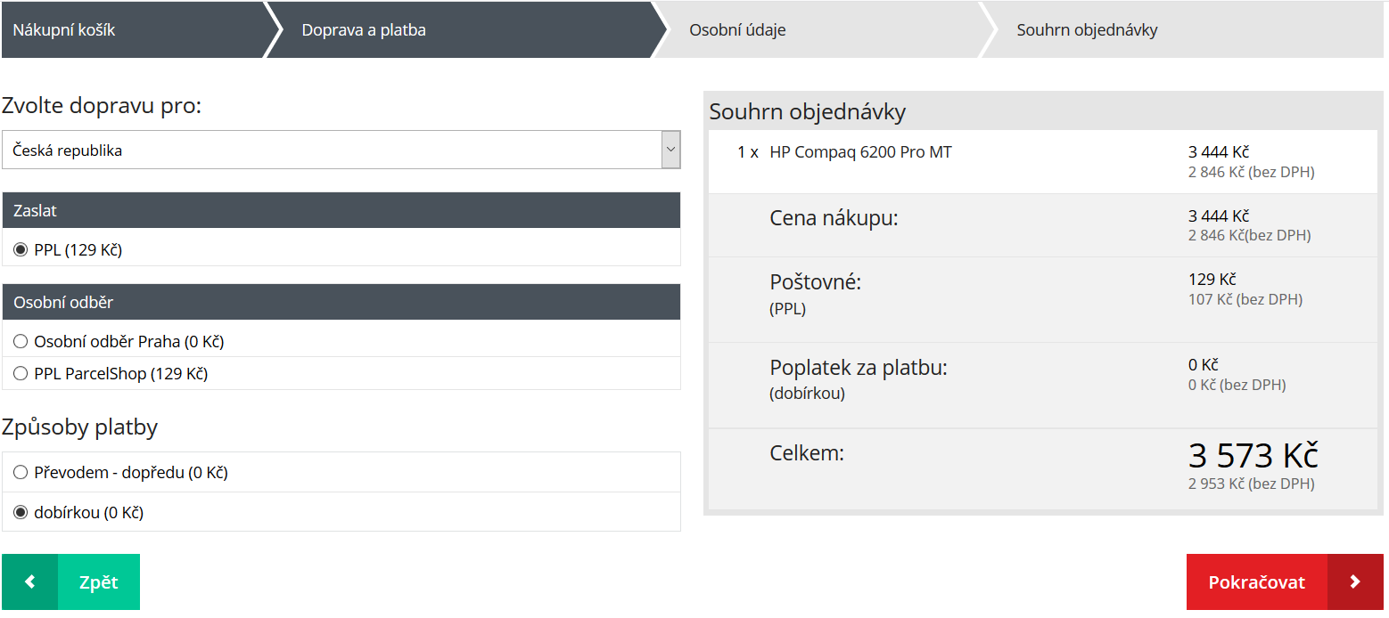 V ideálním případě najděte způsob, jak zobrazovat cenu dopravy již po přidání zboží do košíku. I kdyby se mělo jednat pouze o odhad ceny od. Čím dříve zákazník tuto informaci obdrží, tím dříve bude znát přesné podmínky objednávky a neopustí e-shop v některém z následujících kroků objednávky.