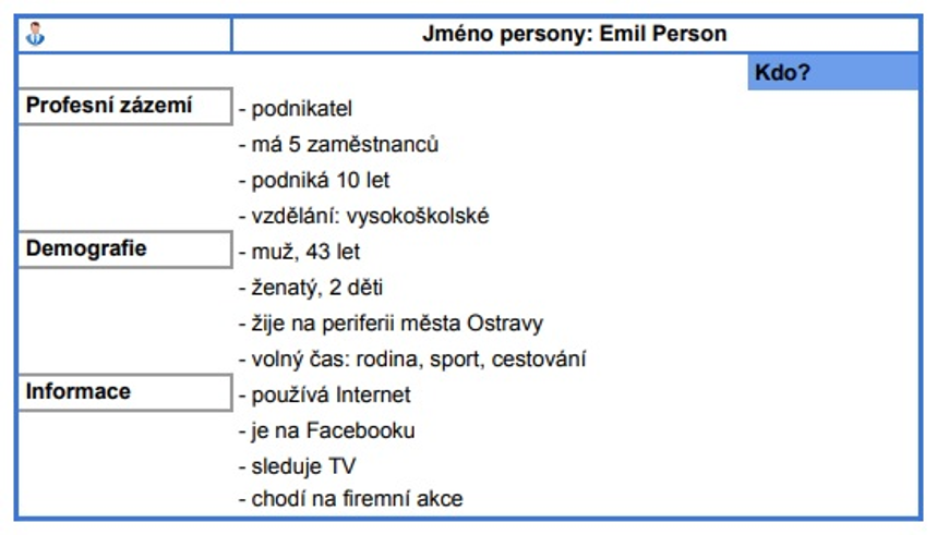 Zde si můžete prohlédnout fiktivní ukázku jedné z person kupujícího. Myslím, že otázky jsou velmi jasné a nepotřebují další popis.