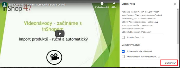 Vložení YouTube videa do produktové stránky e-shopu