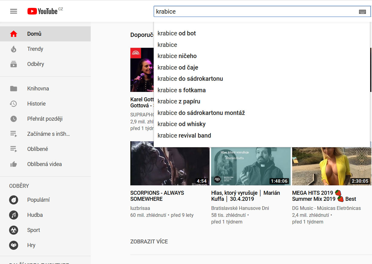 Našeptávače – Youtube, Google, Seznam