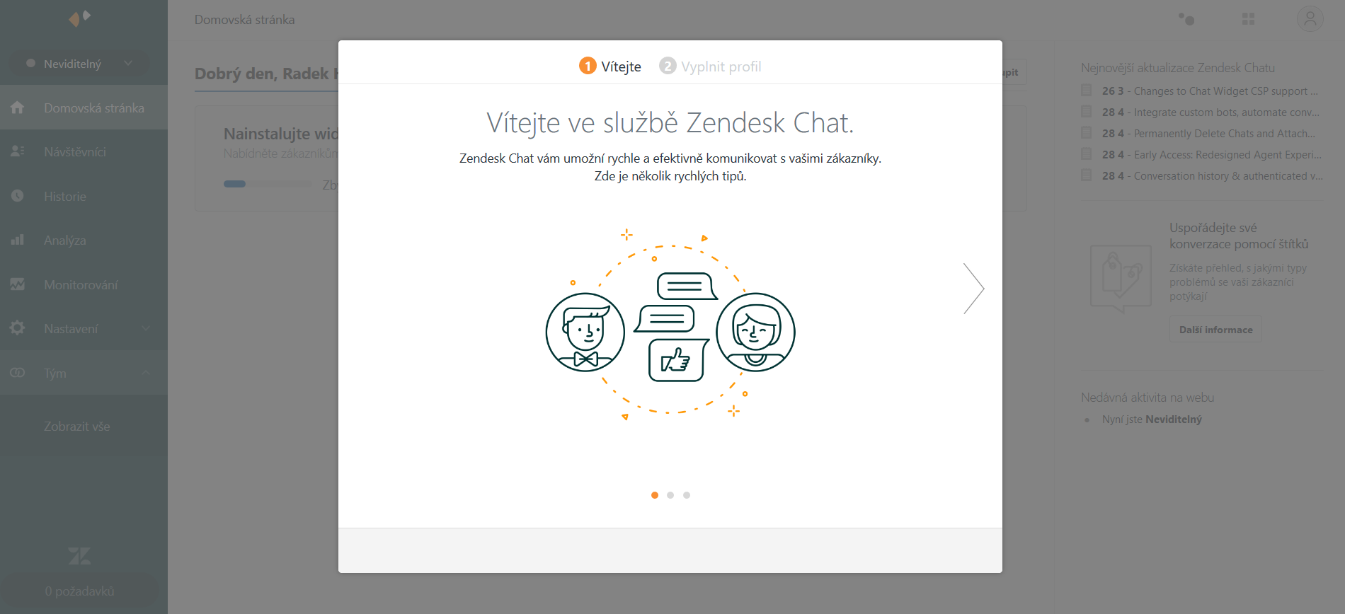 Začneme založením zákaznického účtu v aplikaci Zopim (Zendesk Chat)
