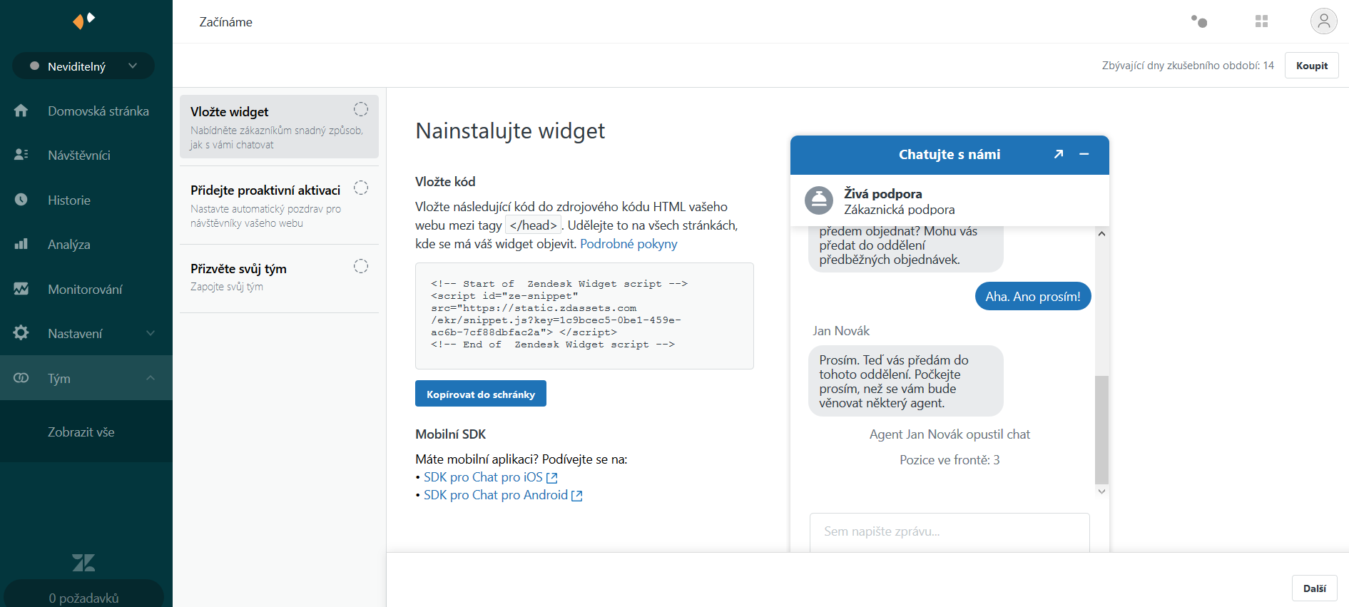 Jak si zapnout live chat od společnosti Zendesk v Zoner inShopu