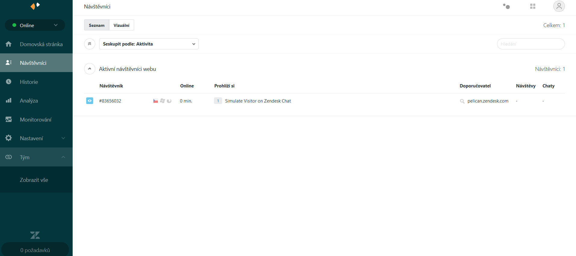 Pokud někdo použije live chat na vašich stránkách, zobrazí se vám upozornění v administraci live chatu, kde můžete také reagovat na dotazy.